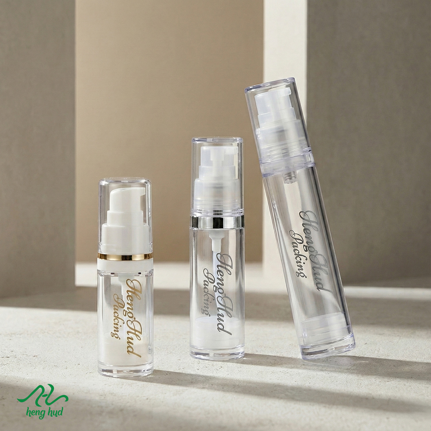 ขวดปั๊มสูญญากาศ (Airless Pump Bottle) ทำจากพลาสติก ผลิตด้วยวัสดุคุณภาพดี มีขนาดให้เลือกทั้งหมด 2 ขนาด คือ ขนาด 5 ml. และ 10 ml.